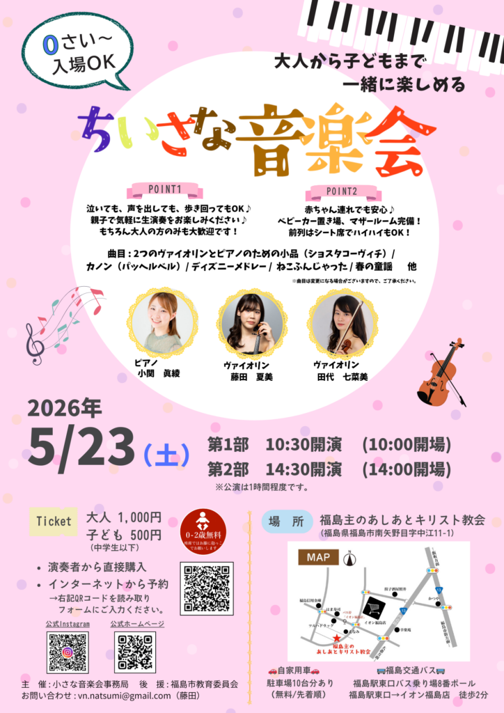 《5/23 開催決定!》前回満席!0歳〜入場OK!ちいさな音楽会